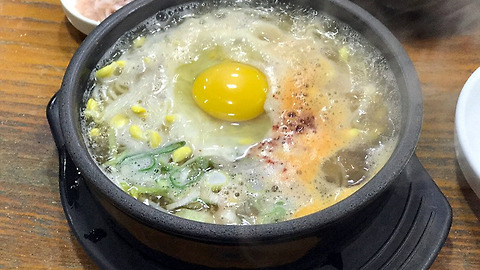 해물 된장국이라 해야하나요? 해물뚝배기라고해야하나요. 안에는 새우와 게등이 들어있습니다.